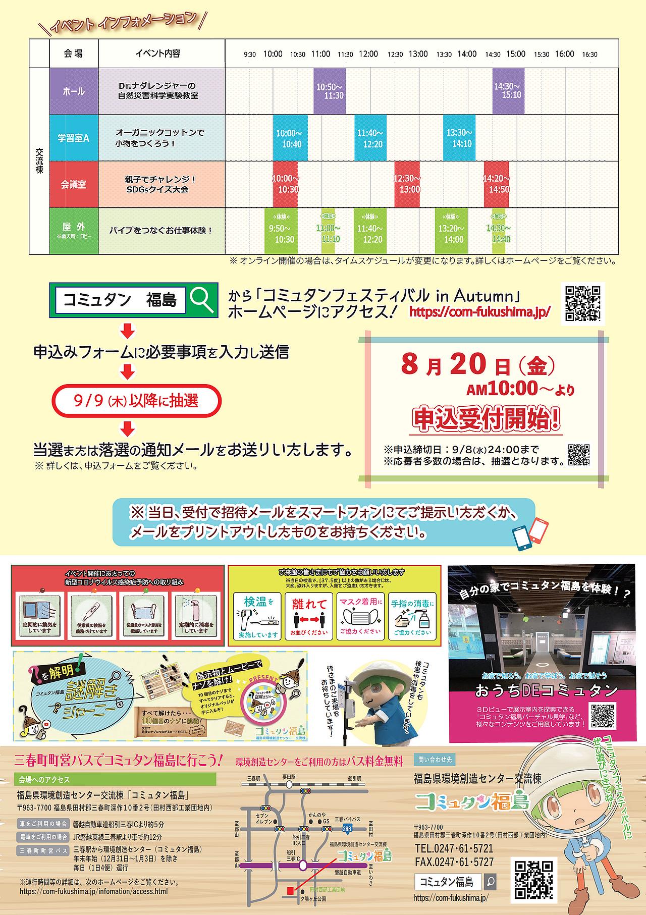お申し込みは、8/20(金)10:00からWebにて、事前申込を受け付けます。なお、応募者多数の場合抽選となります。