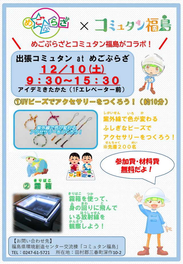 コミュタン福島が「めごぷらざ」(喜多方市)でワークショップを行います!!